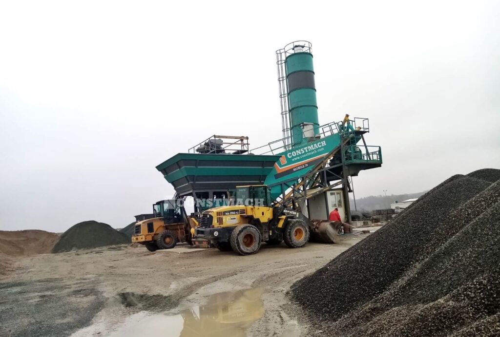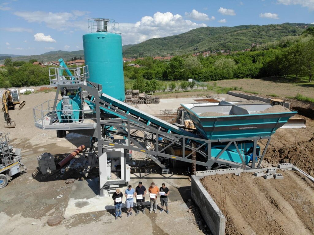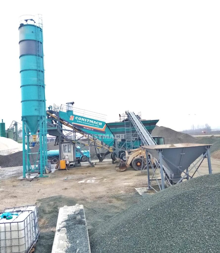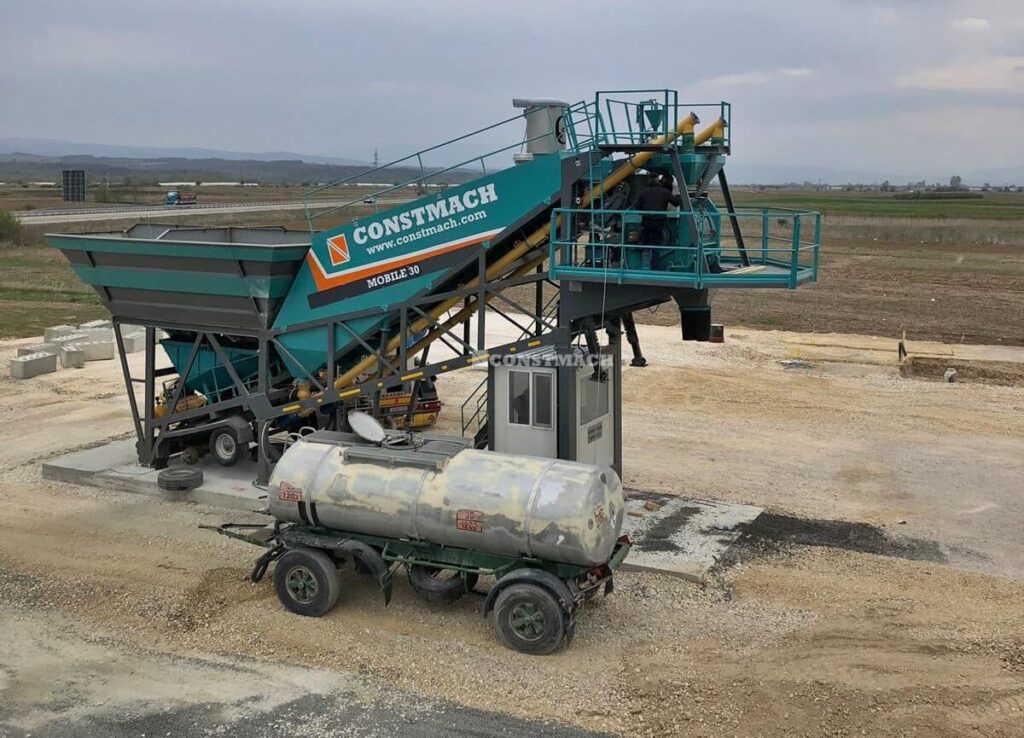 CONSTMACH MOBILE 30 mobile type Concrete batching plant requires a minimum site preparation. Just a flat ground that is capable to carry the total load of the plant is enough. Cement silos which are mounted to the chassis of mobile plants have 30 tonnes stock capacity. In case of necessity, external cement silos which have stock capacity from 50 to 500 tonnes can be also used. External type cement silos have always full steel legs to remove the necessity of concrete legs building.
