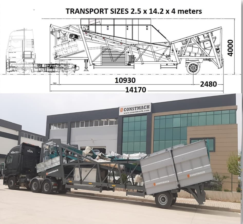 Overall dimensions of MOBILE 30 are determined according to international road transport regulations and it is transported between jobsites easily.